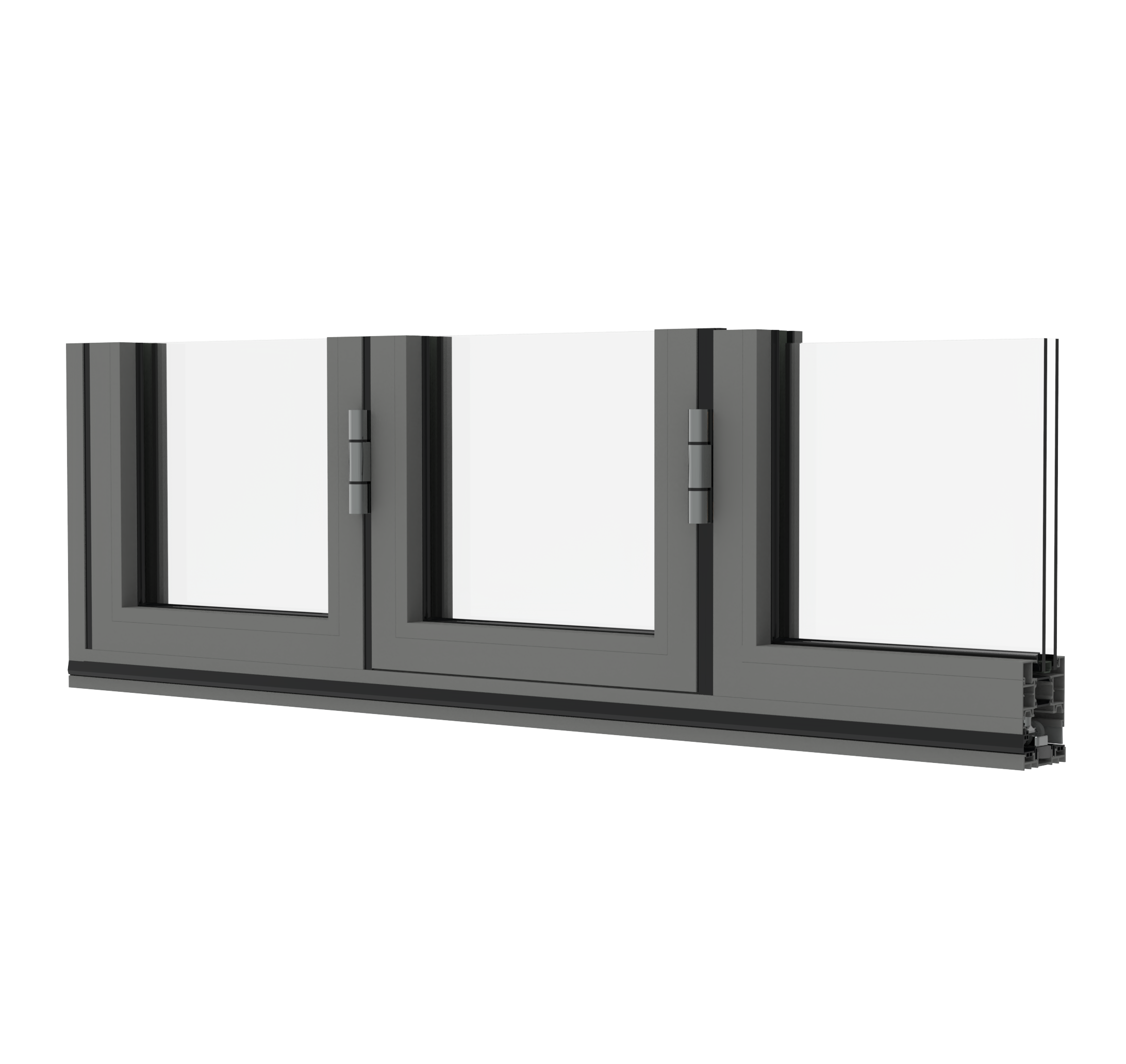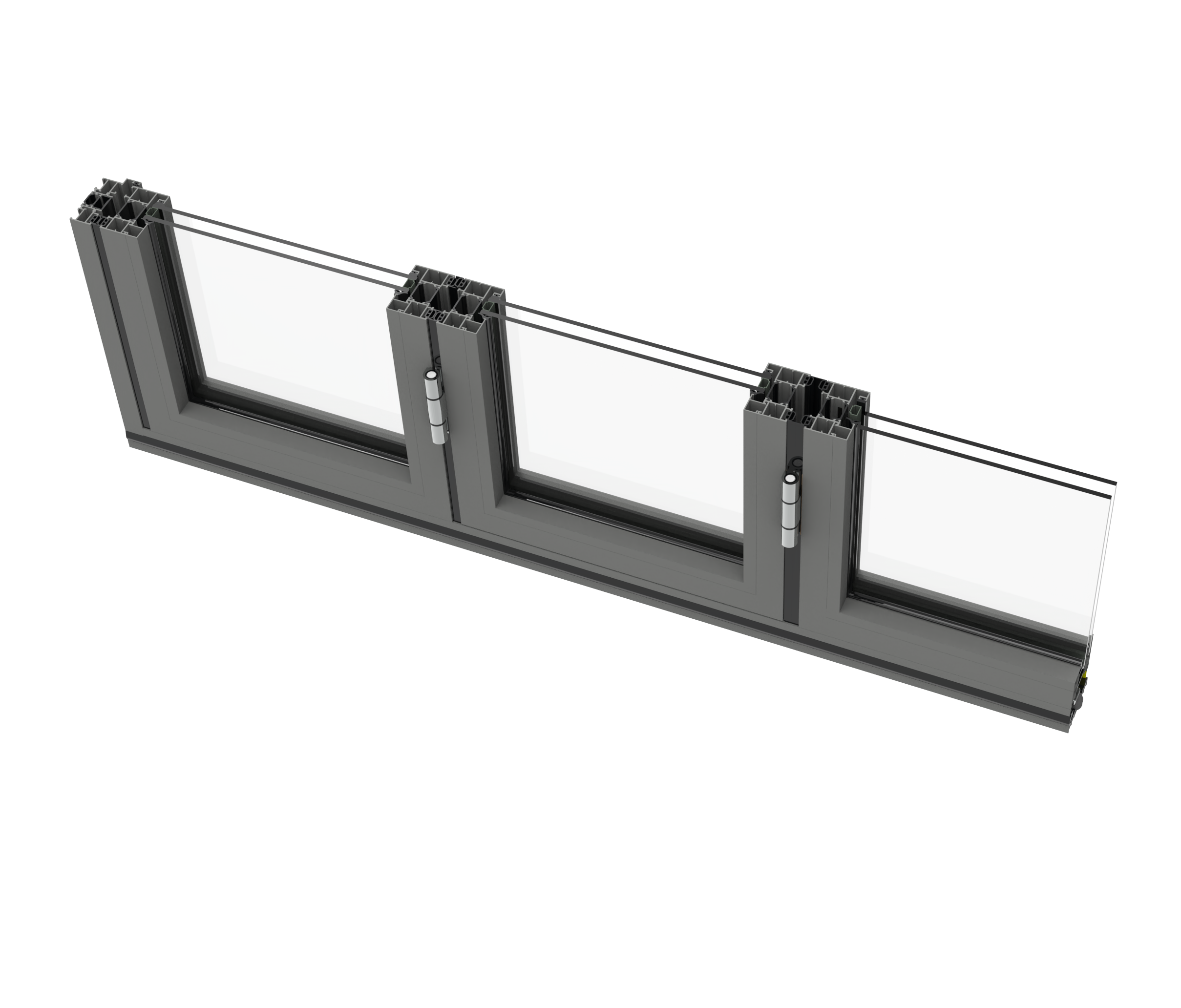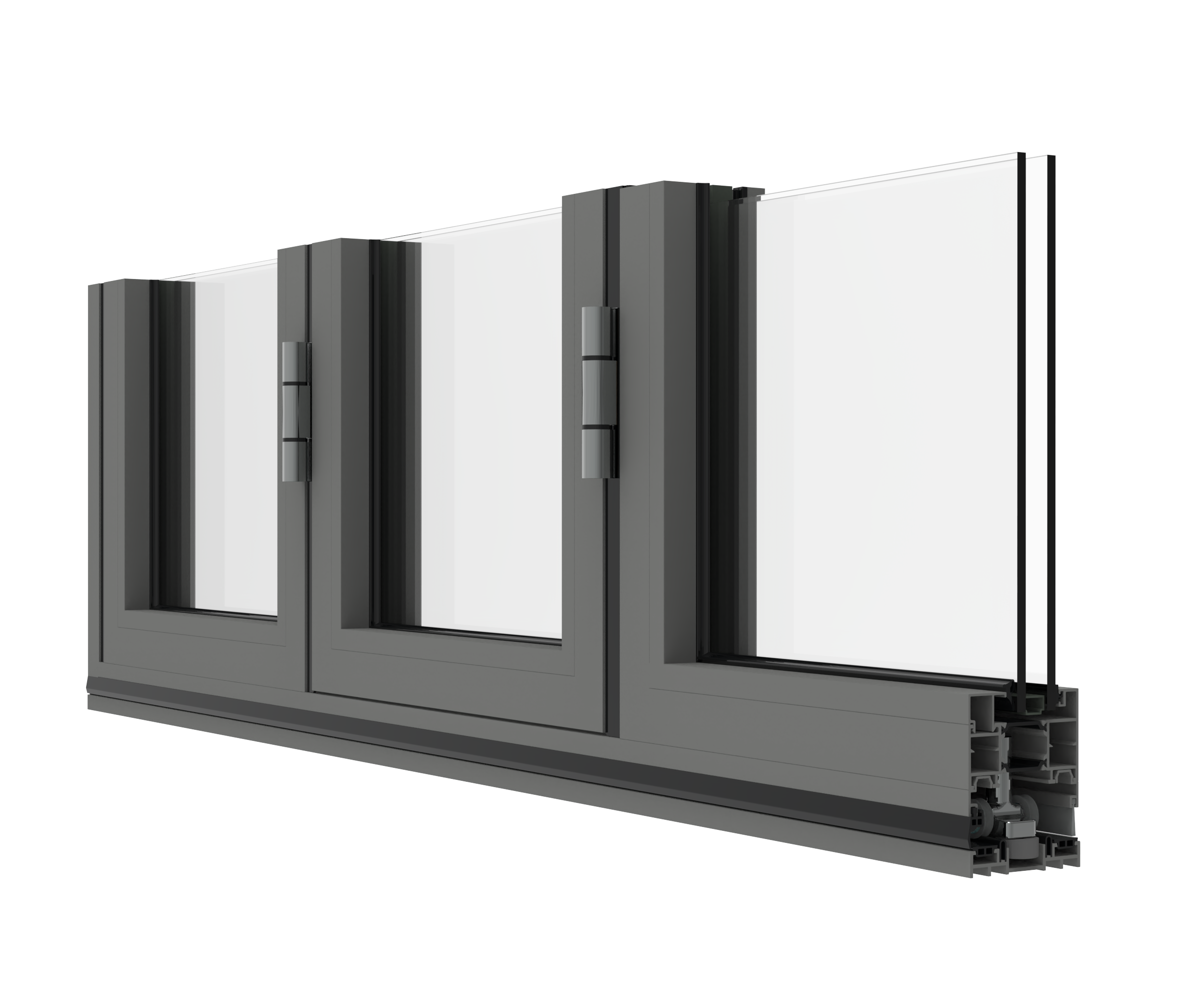 – Sliding panels run on stainless steel tracks for smooth operation and long service life. |