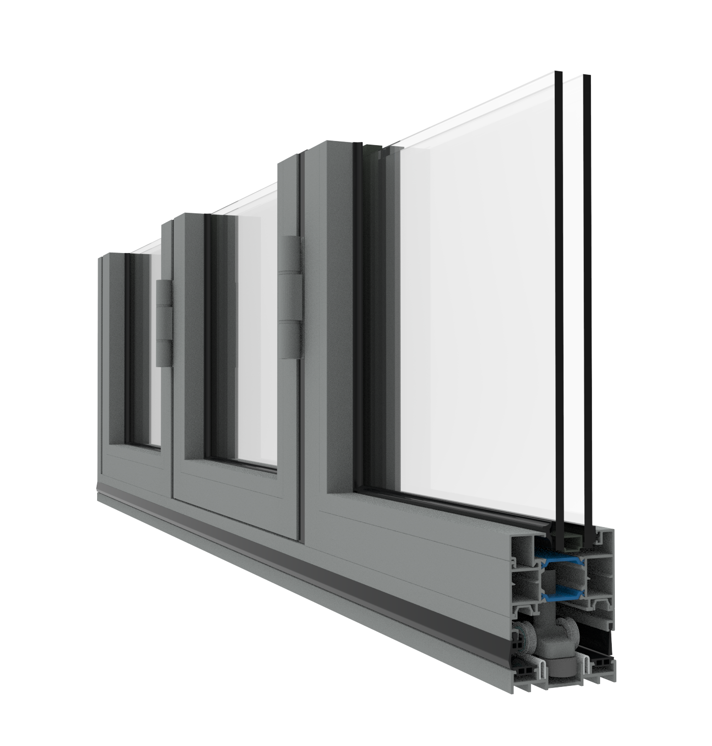 The system is glazed internally to accommodate 28mm to 34mm double glazed units, using standard beads. As with all Brital systems, the door system is manufactured to exacting standards enabling economy to be combined with strength to give many years of aesthetic, troublefree operation.